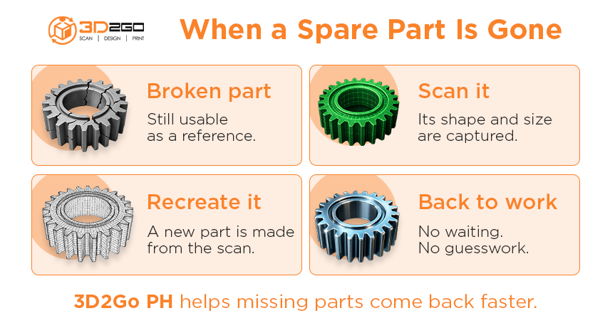 That’s where 3D2GoPH comes in. With hands-on experience in scanning, modeling, and manufacturing workflows, the focus is on producing spare parts that perform in real-world conditions, not just on-screen.