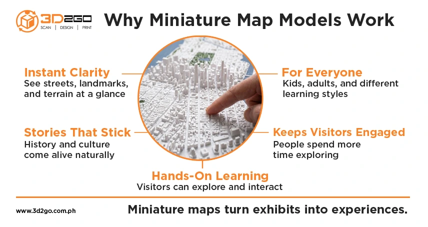 If you want your exhibit to wow visitors while simplifying information, start with a professional miniature map. Connect with the experts and bring your spaces to life: Contact 3D2GoPH today.