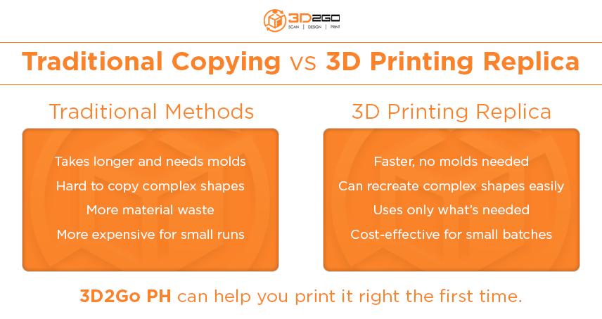 This is especially helpful in the Philippines, where local businesses want fast turnaround without relying on expensive imports. 3D-printed replicas let teams produce complex parts locally and avoid long wait times.